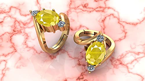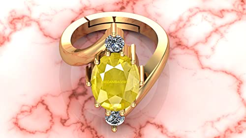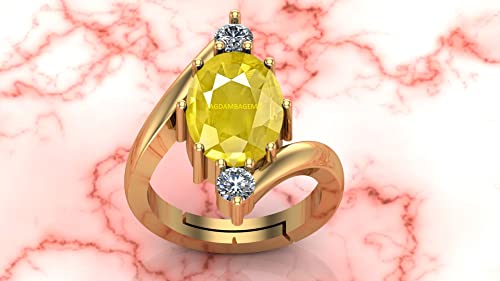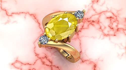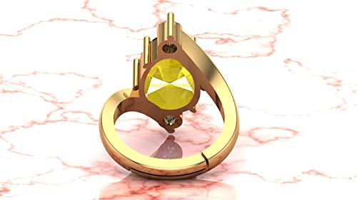 JAGDAMBA GEMS 6.25 Ratti 5.75 Carat Unheated Untreatet A+ Quality Natural Yellow Sapphire Pukhraj Gemstone Gold Plated Ring for Women's and Men's (Lab Certified)