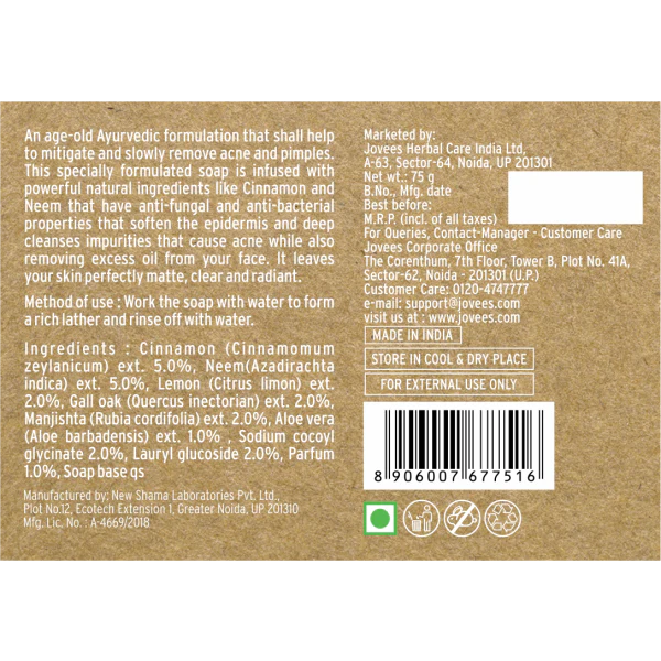 Jovees Cinnamon & Neem Anti Acne Face Bar Soap (75 gm)