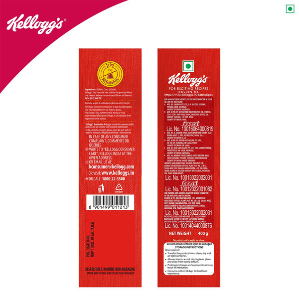 Kellogg's Oats, Rolled Oats, High in Protein and Fibre, Low in Sodium, 400g Pack