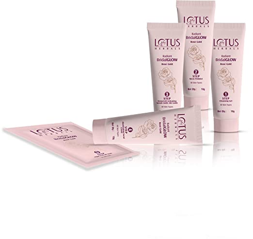 Lotus Herbals Radiant BridalGLOW ROSE GOLD Skin Illuminating & Revitalising Facial Kit (228 gm)