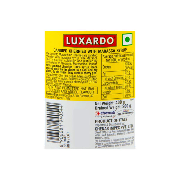 Luxardo Maraschino Cherries, 400Gm | Ideal For Cocktail And Toppings