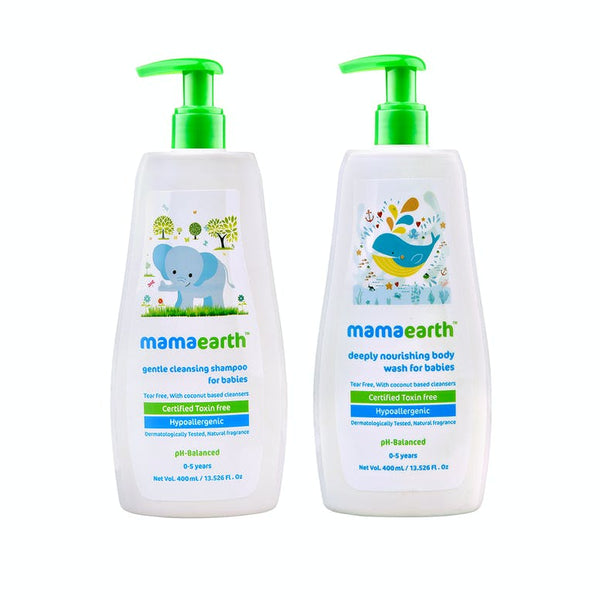 Mamaearth Deeply Nourishing Body Wash for Babies (400 ml) & Gentle Cleansing Shampoo (400 ml) Combo