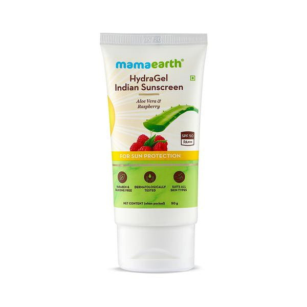 Mamaearth HydraGel Indian Sunscreen with Aloe Vera and Raspberry for Sun Protection (50 gm)