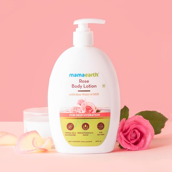 Mamaearth Rose Body Lotion with Rose Water and Milk for Deep Hydration