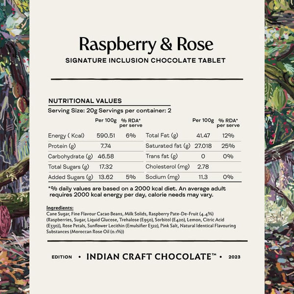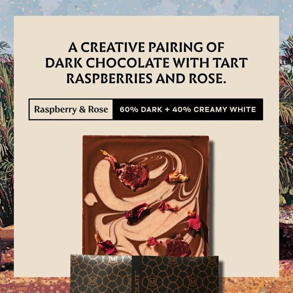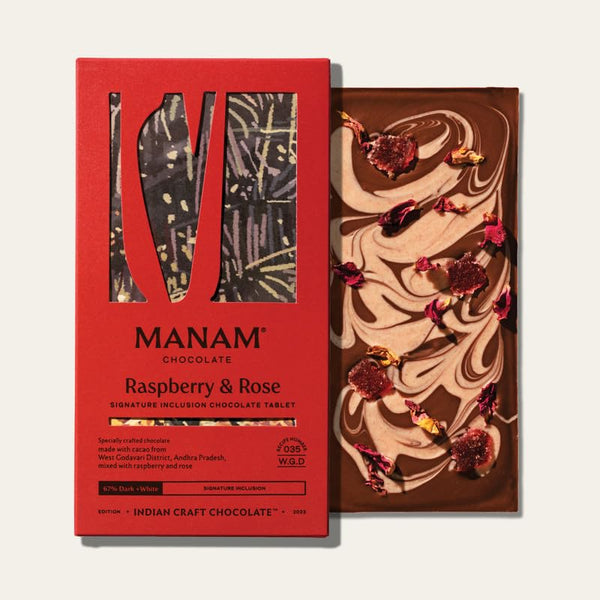Manam Chocolate Signature Inclusion Tablet - Raspberry & Rose, 67% Dark & White - 80g