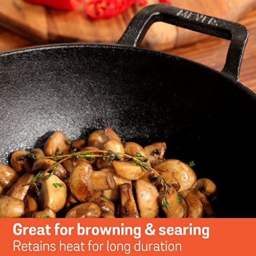 Meyer Pre Seasoned Cast Iron Kadai|Iron Kadhai with Lid for Cooking and Deep Frying | Heavy Base Iron Kadai Small Size | Gas Stove and Induction Friendly 20cm/ 2 Liters, Black