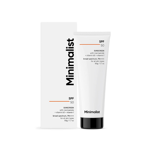 minimalist SPF50 Sunscreen Cream SPF 50 Lightweight, No White Cast, Broad Spectrum PA ++++, Acne Safe, For Men & Women, 50 gm