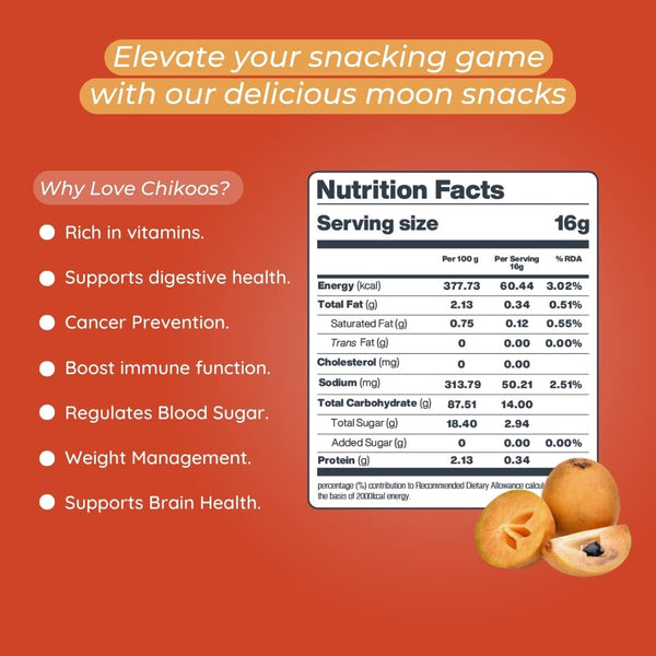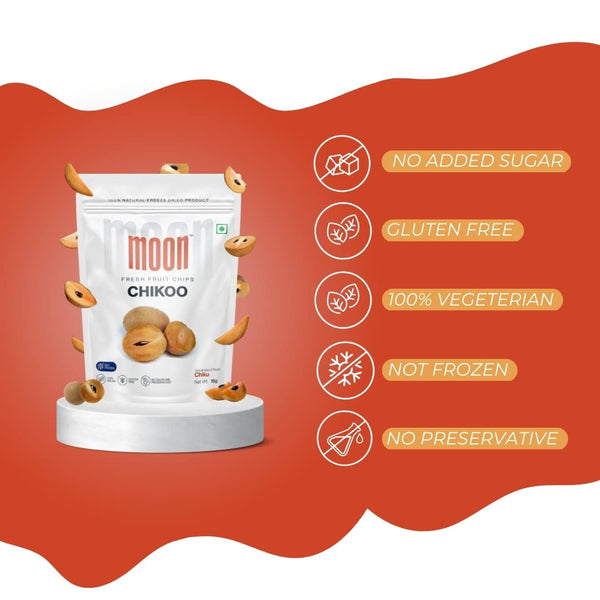 Moon Freeze Dried Chikoo | Healthy Chikoo Snack | 100% Natural, Vegan, No Preservatives, No Added Sugar | 16Gm | Pack of 01