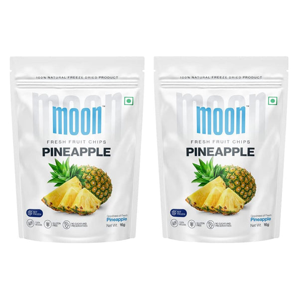 Moon Freeze Dried Pineapple Chips | Healthy Pineapple Snack | 100% Natural, Vegan, No Preservatives, No Added Sugar | 16 Gm | Moon_Pineapple_Chips | (16Gm) Pack of 2