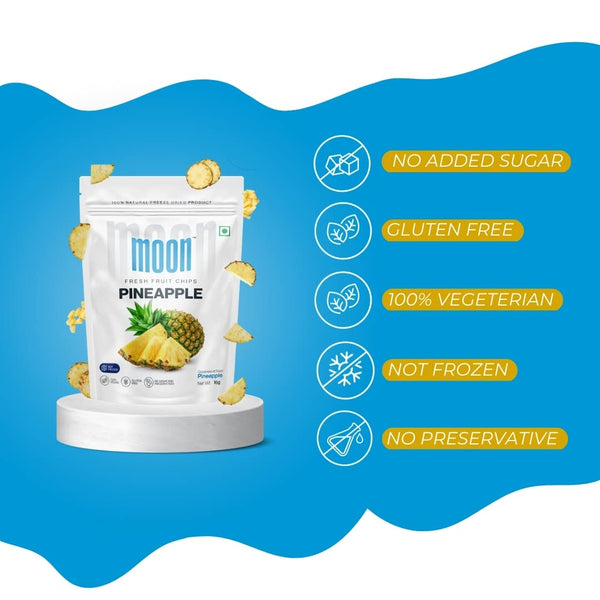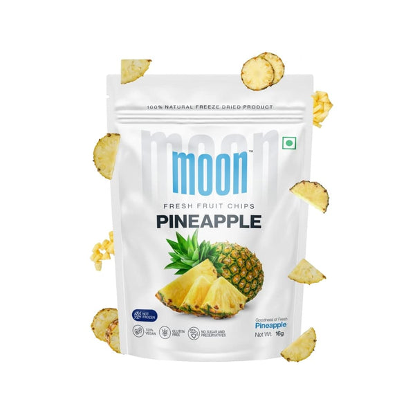 Moon Freeze Dried Pineapple Chips | Healthy Pineapple Snack | 100% Natural, Vegan, No Preservatives, No Added Sugar | 16Gm | Moon-Fruit-Cubes | (16Gm) Pack of 1