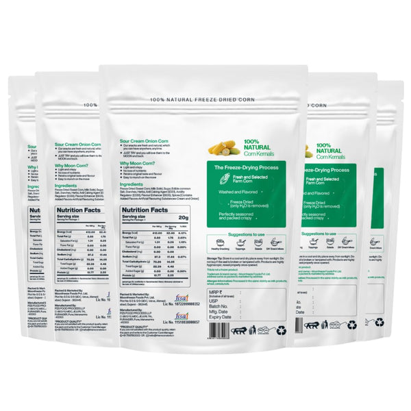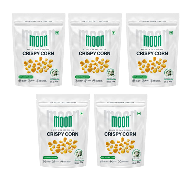 Moon Freeze Dried Sour Cream Onion Crispy Corn 20g Pack of 05 (20g X 5) |Not Baked or Fried | No GMO |No Oil & Preservatives | Healthy Snacks | Source of Fiber | 100% Natural Light & Crispy Corn