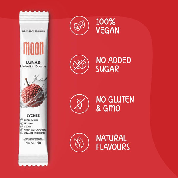 Moon Lunar Lychee hydration Booster | 100% Natural & Healthy Electrolytes Mix | Instant Hydration Pack of 6 (16g Sachets)