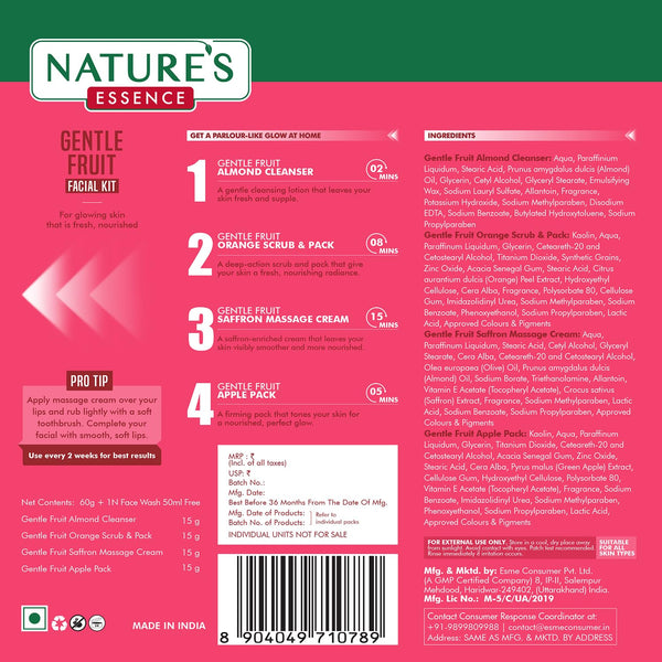 Nature's Essence Gentle Fruit Facial Kit, 3 Uses (45 gm + 30 ml)