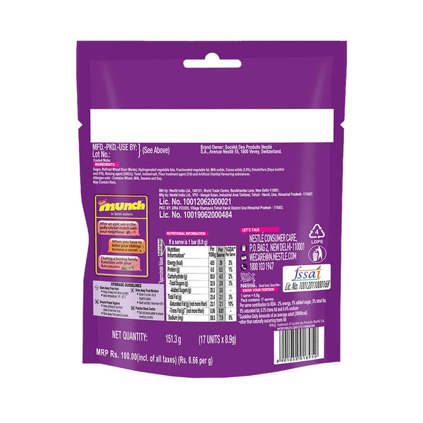 Nestlé Munch Chocolate Coated Crunchy Wafer Share Pack, 151.3 g | 17 Units - 8.9 Gram Each (Weight may vary upwards)