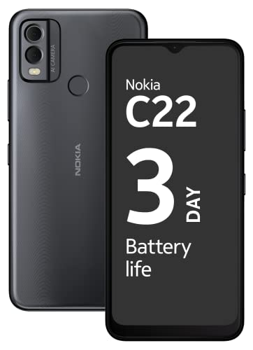 Nokia C22 | 3-Day Battery Life | 4GB RAM (2GB RAM + 2GB Virtual RAM) | 13 MP Dual Rear AI Camera with Night & Portrait Mode | IP52 | Charcoal