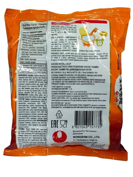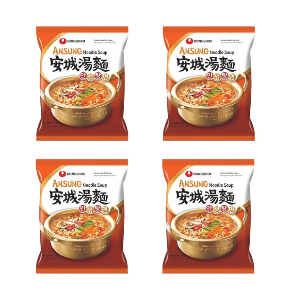 Nongshim Ansung Noodle Soup - Mild Spicy Soybean Paste Flavour, 125g (Pack of 4)