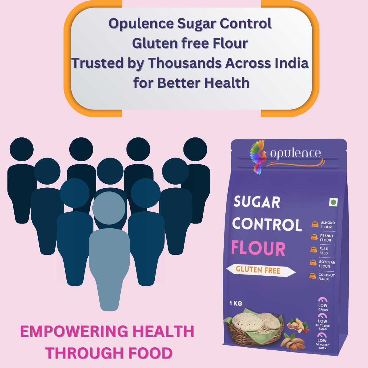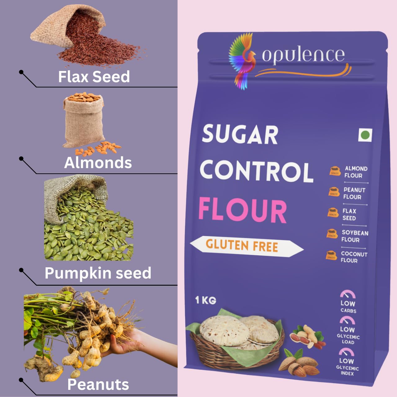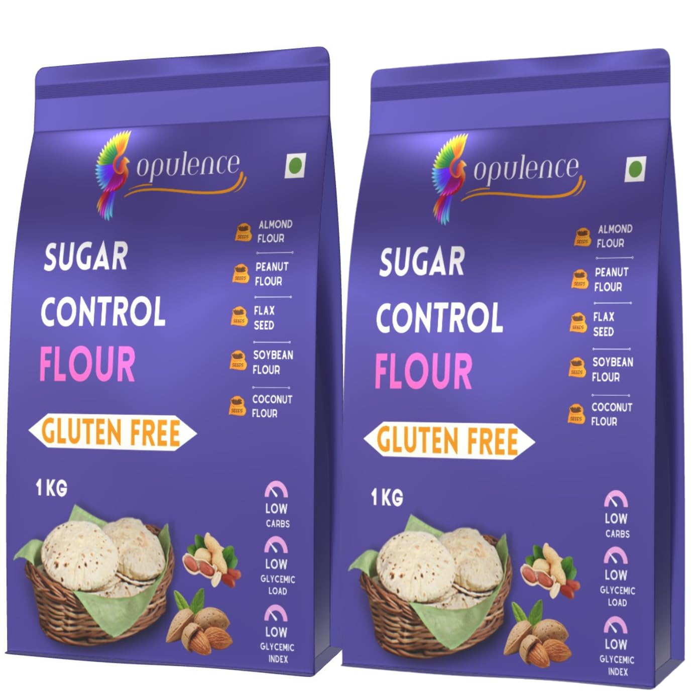 Opulence Sugar Control Gluten Free Flour | LAB TESTED | Low Glycemic Index, High Fiber, Natural & Healthy | Ideal for Rotis, Chapatis , Chilla & Baking | Diabetes-Friendly Flour for Healthy Lifestyle | 2kg ( 2 X 1KG )