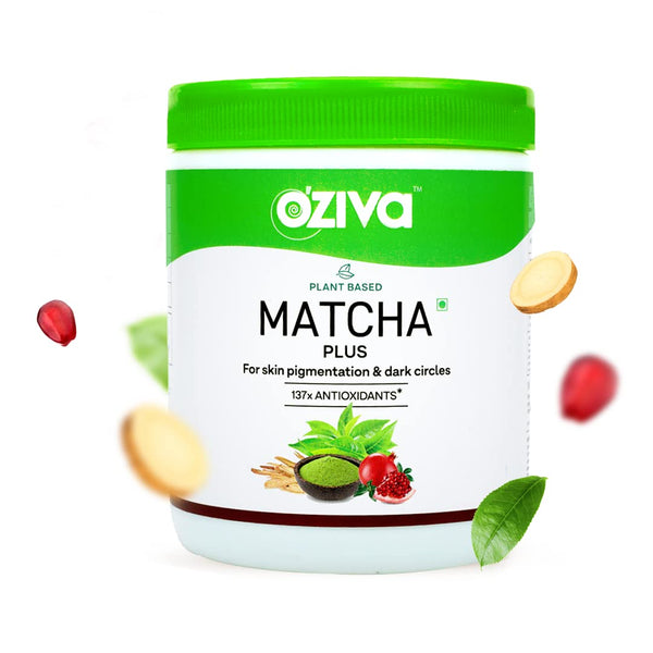 OZiva Plant Based Matcha Plus - Organic Japanese Matcha Green Tea with Licorice & Activated Charcoal - 50 Servings (50g)