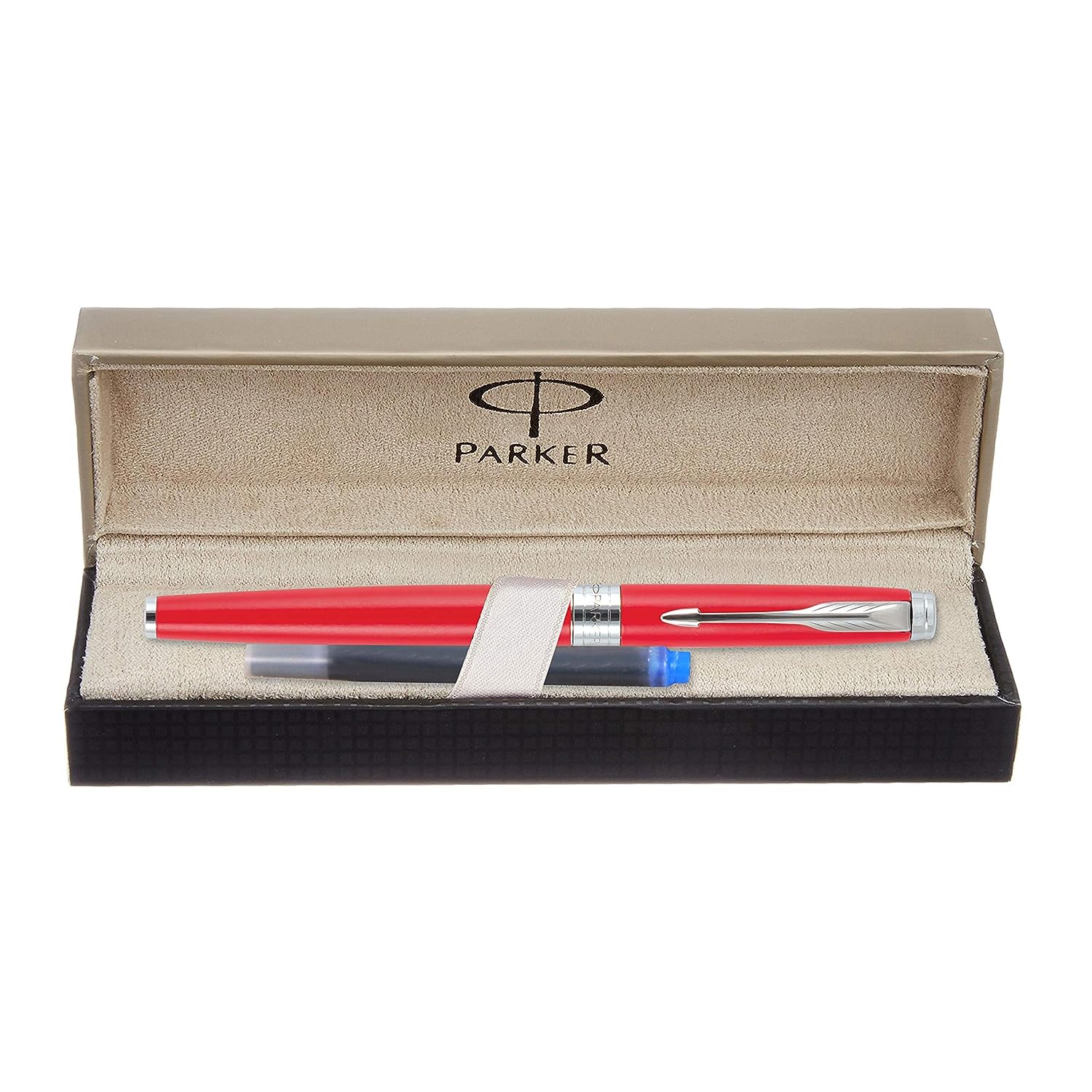 Parker Aster Chrome Fountain Pen | Body Color - Red | Ink Color - Blue
