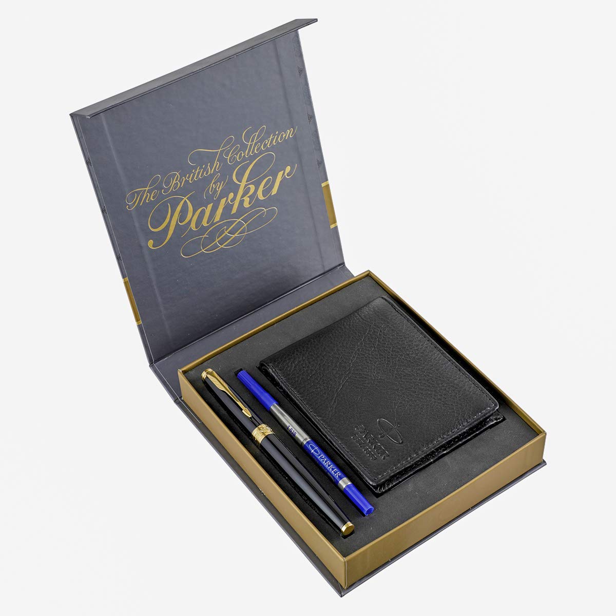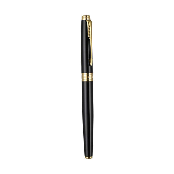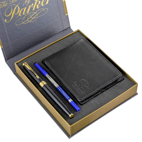 Parker Aster Laque Black Roller Ball Pen with Wallet ( Gold Trim)