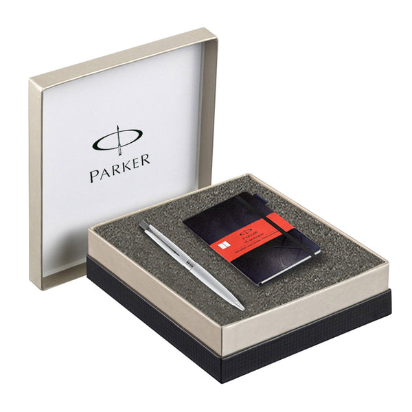 Parker Aster Pearl White Chrome Ball Pen with Parker Notebook