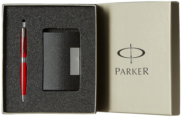 Parker Aster Red Chrome Ball Pen With Card Holder