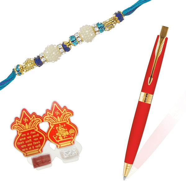 Parker Aster Red Gold Trim Ball Pen with Premium Rakhi