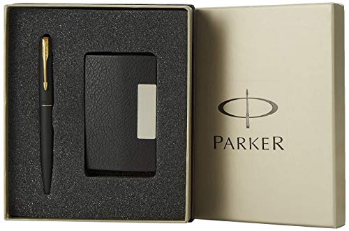 Parker Frontier Fountain Pen Chrome Trim Matte Black with Card Holder - Blue Ink, Pack Of 1