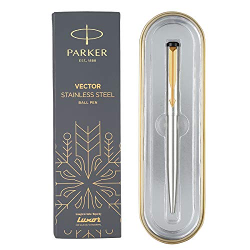 Parker Vector Gold Trim Stainless Steel Ball Pen - Blue Ink, Pack Of 1