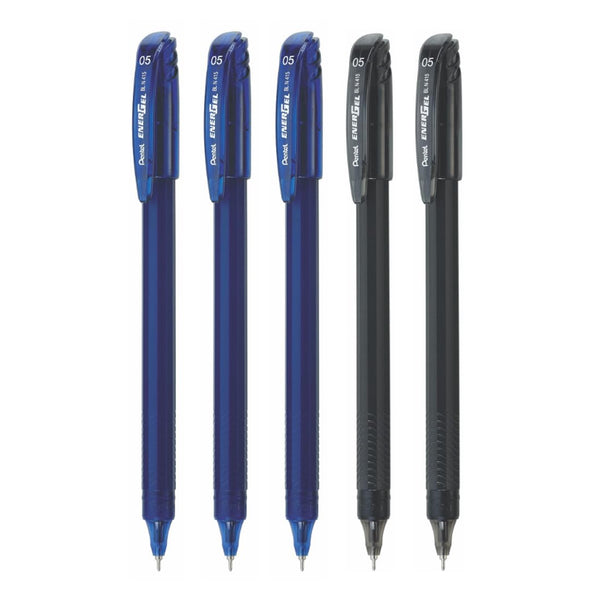 Pentel BL415 0.5mm EnerGel Roller Gel Pen - 3 Blue & 2 Black Ink, Pack of 5