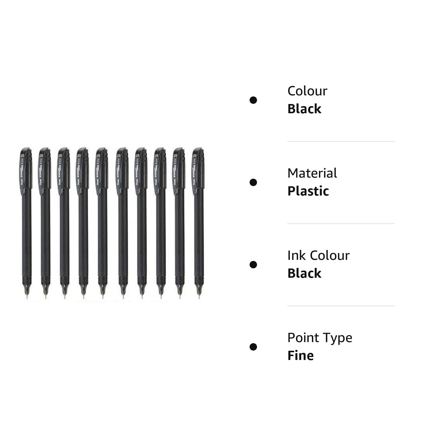 Pentel BL415 0.5mm EnerGel Roller Gel Pen - Black Ink, Pack of 10