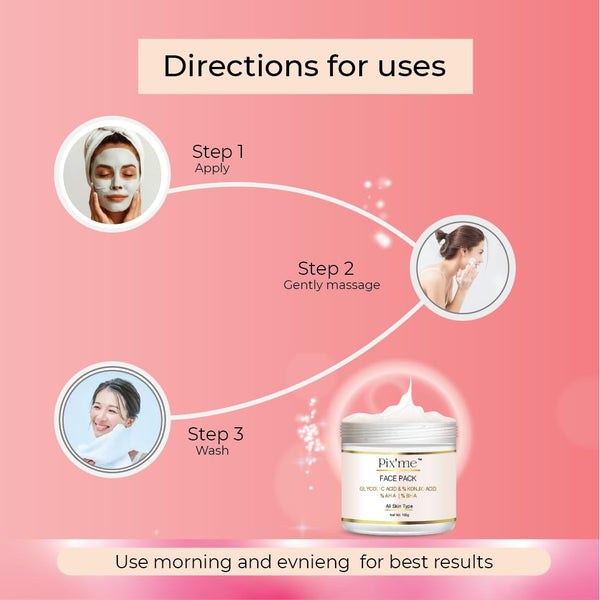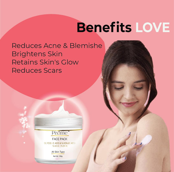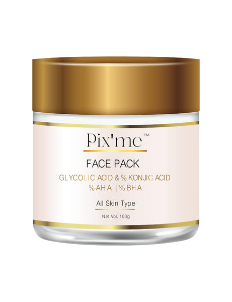 Pix'me AHA + BHA & KojicFace Mask With Glycolic Acid | Exfoliating and Brightening-100gm