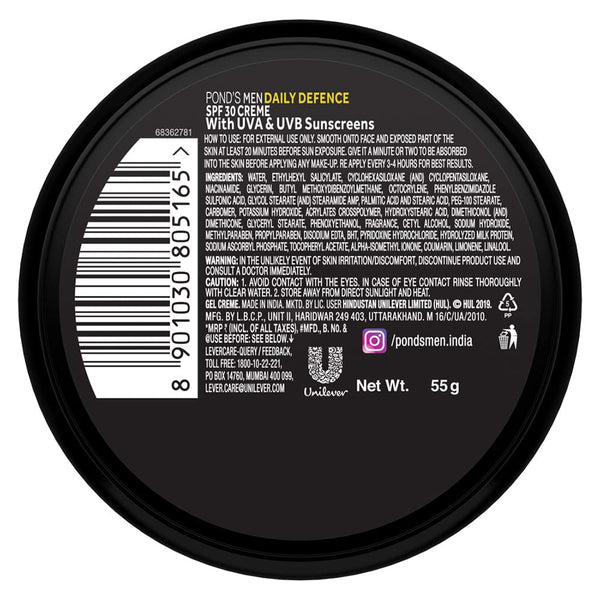 Ponds Men Daily Defence SPF 30 Face Creme, Non-Greasy Formula, Rich In Vitamin (55 gm)