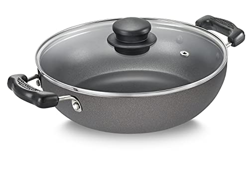 Prestige Omega Select Plus Aluminium Kadai with Glass Lid |Multicolour | Induction Base | Non-Stick PFOA Free | Sturdy Handles | Metal Spoon Friendly