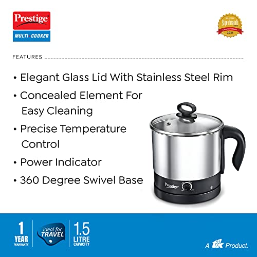Prestige PMC 3.0+ Stainless Steel Outer Lid Multi Cooker 1.5L -Idli Stand with 3 Plates, Egg Boiling Rack with Stand, Steamer