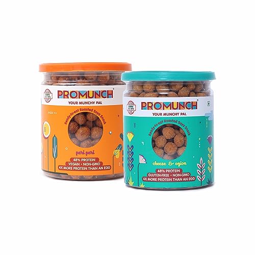PROMUNCH Roasted Soya Snack - Pack of 2, Flavour: Peri-Peri and Cheese & Onion - 150G Each