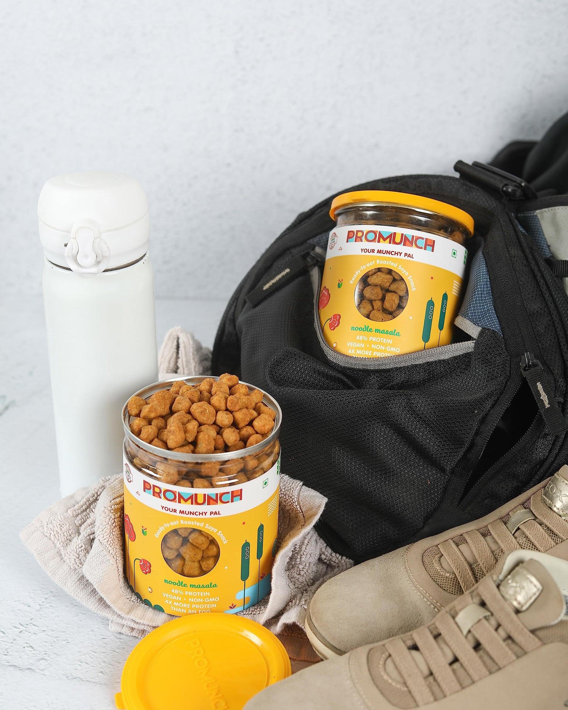 PROMUNCH Roasted Soya Snack - Pack of 2, Flavour: Peri-Peri and Noodle Masala - 150G Each
