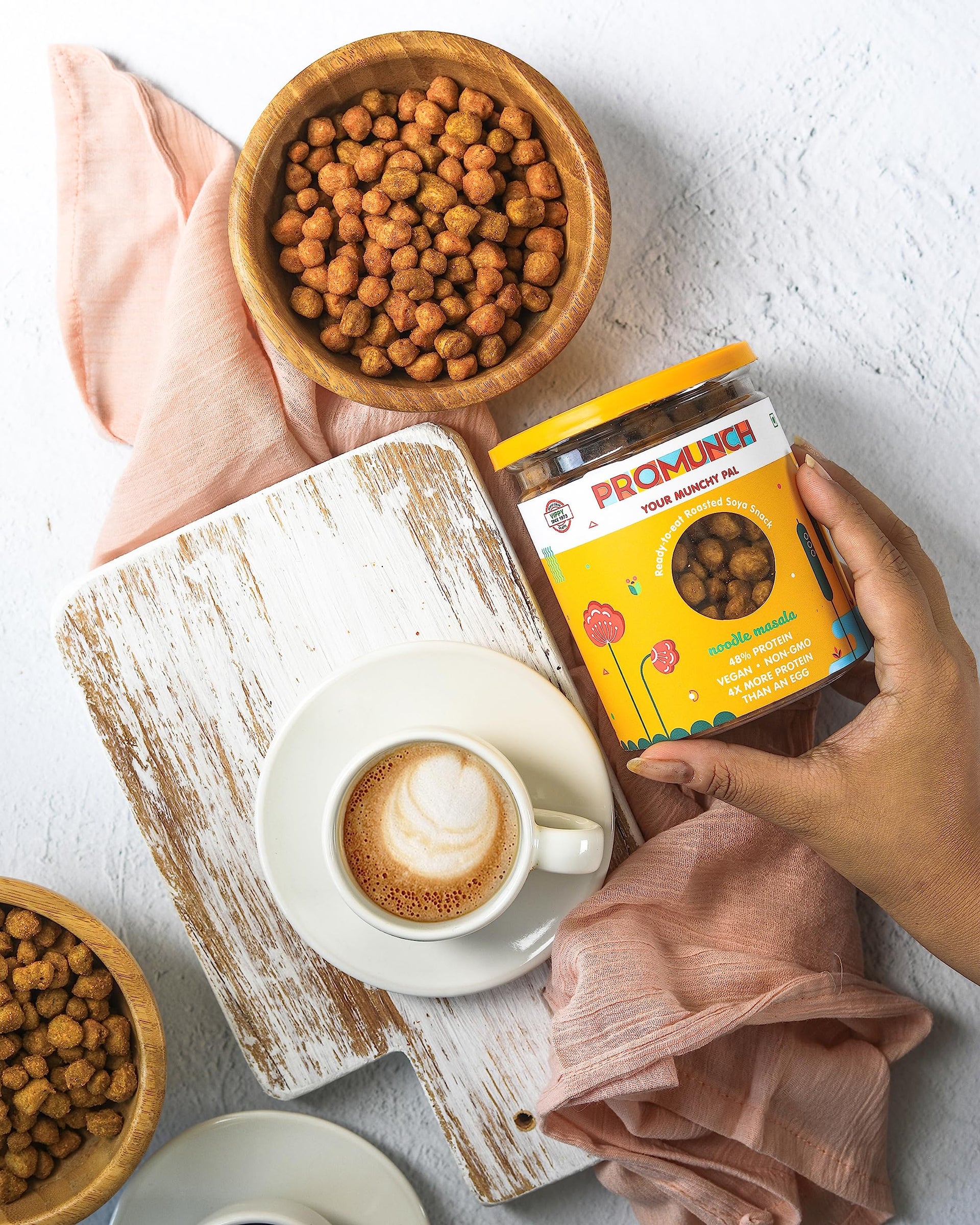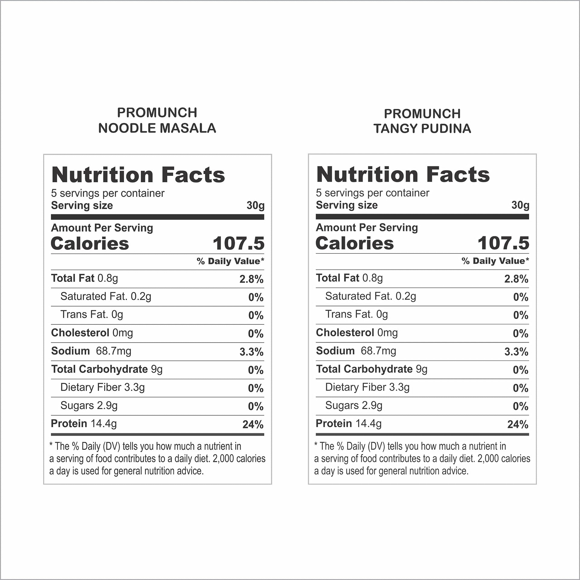 PROMUNCH Roasted Soya Snack - Pack of 2, Flavour: Tangy Pudina and Noodle Masala - 150G Each