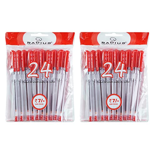 Radius 24, 0.7mm Ball Pen - Red Ink, Pack of 20