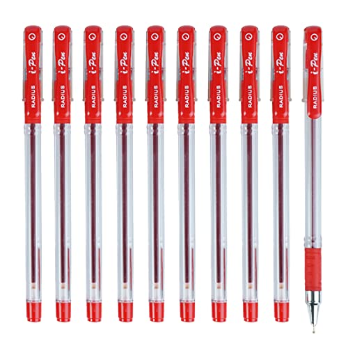 Radius i-Pen Push Cap, 0.7mm Ball Point Pen - Red Ink, Set of 3 x Pack of 10