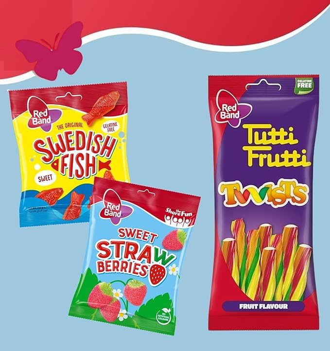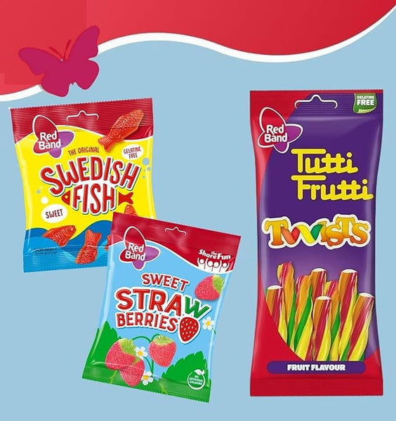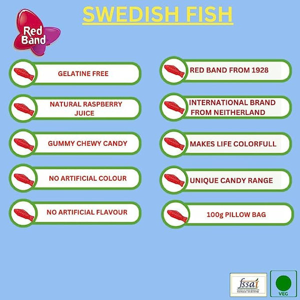 Redband Swedish Fish, Sweet Strawberry & Tutti Frutti Twists Natural Juicy Chewy Gummy Candy | 100% Veg | Imported from Neitherlands - 100g (Pack of 1)