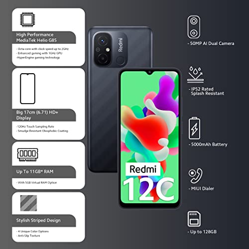 Redmi 12C (Matte Black, 4GB RAM, 64GB Storage) | High Performance Mediatek Helio G85 | Big 17cm(6.71) HD+ Display with 5000mAh(typ) Battery