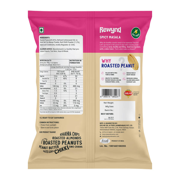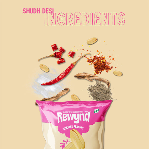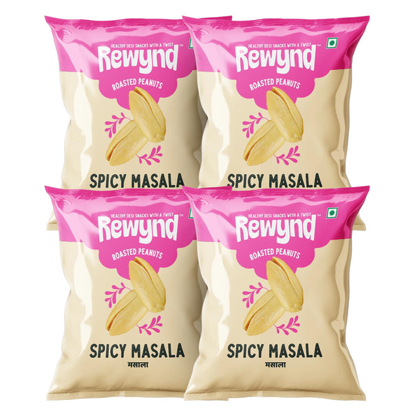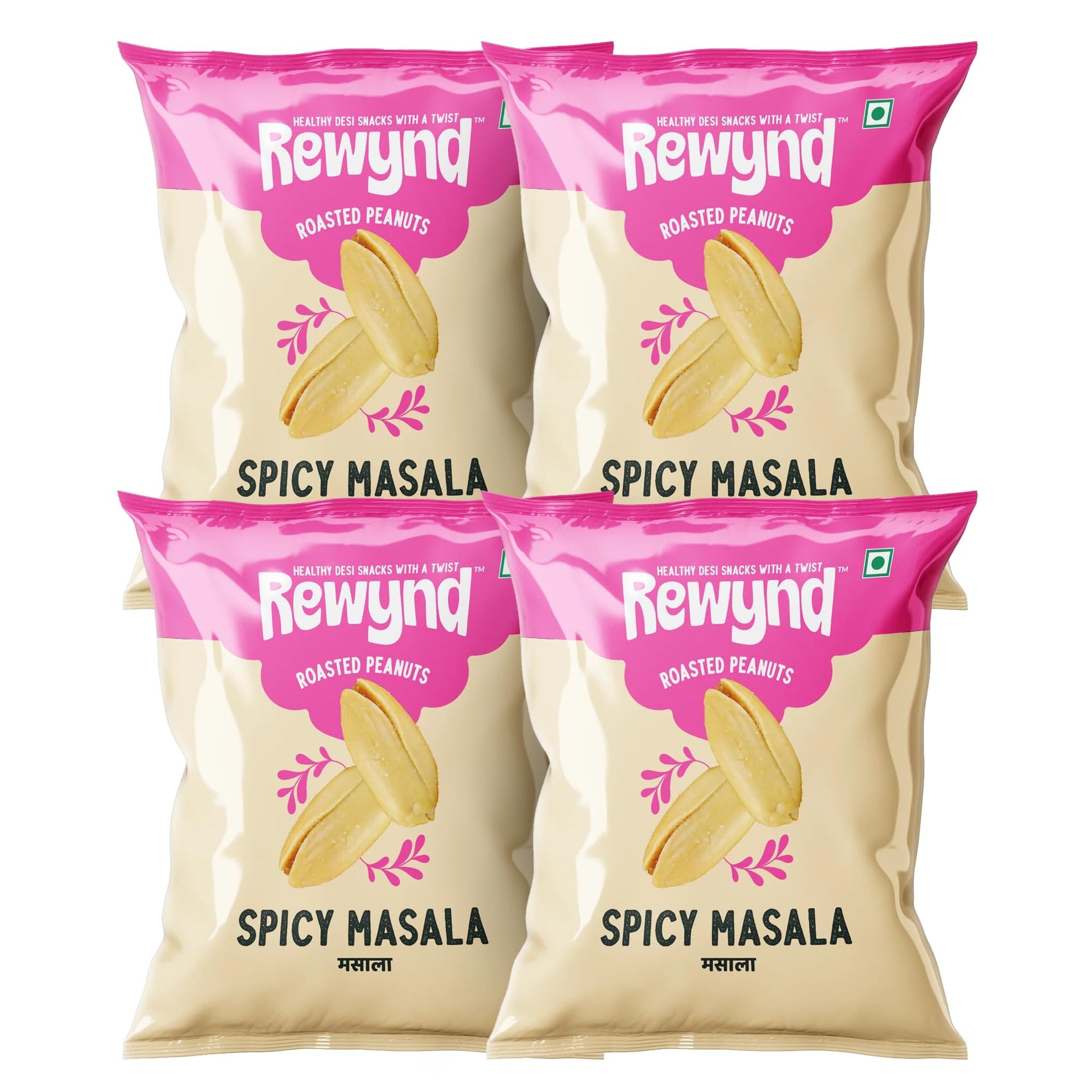 Rewynd Roasted Spicy Masala Peanuts|Pack of 4 (4 x 140g) |Roasted Flavoured Peanuts | High Protien & Low Carbs| Roasted Not Fried | 100% Veg. | Healthy Snack for Anytime Snacking