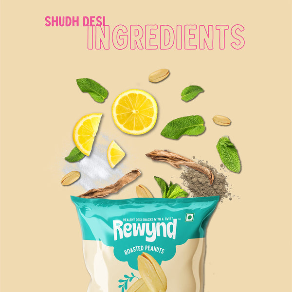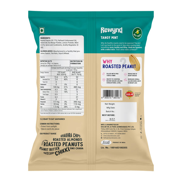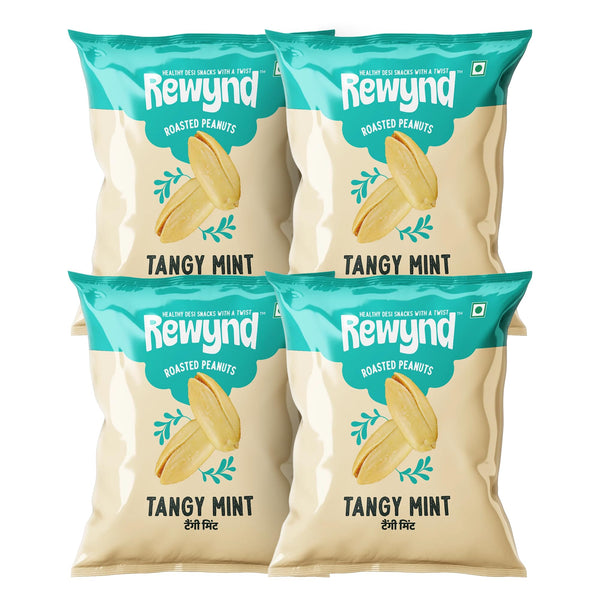 Rewynd Roasted Tangy Mint Peanut | 560gm (Pack of 4) | Roasted not Fried | Flavored Peanuts for Adults & Kids | High Protien | 100% Veg | Healthy Snack for Anytime Snacking