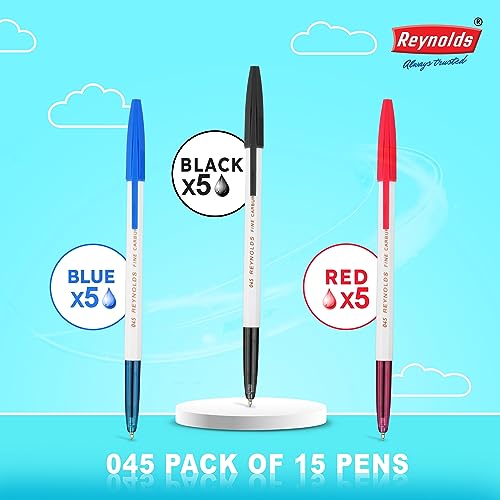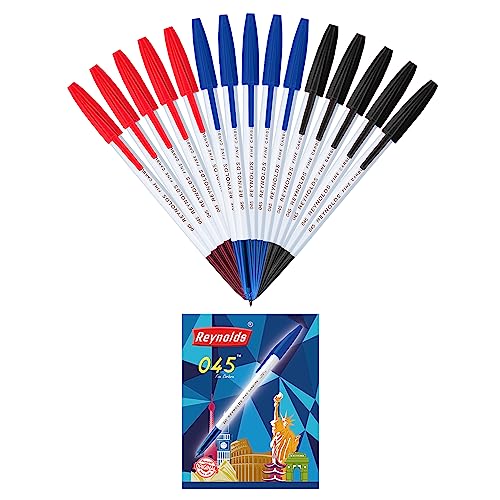 Reynolds 045 0.7mm Ball Pen - 5 Blue, 5 Black, 5 Red, Pack of 15