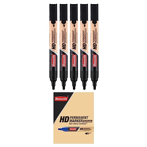 Reynolds HD permanent marker - Black Ink, Pack of 5