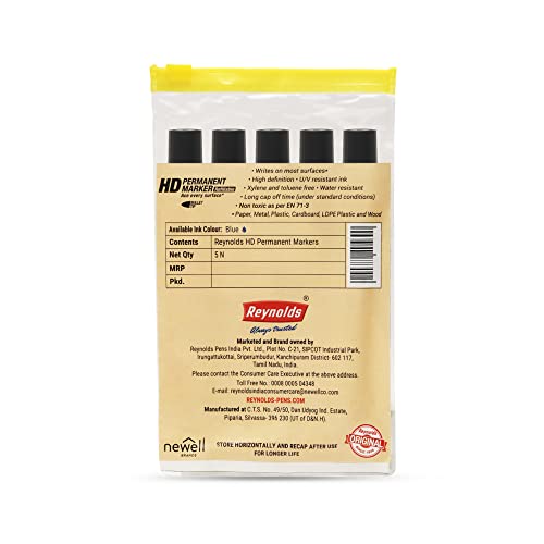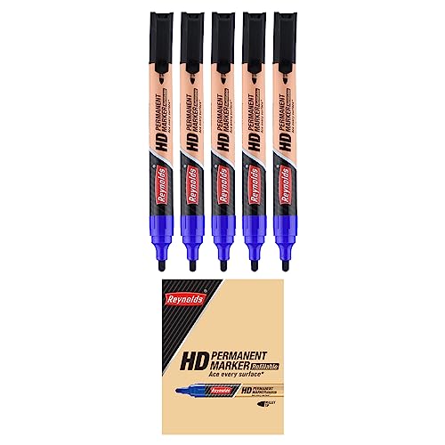 Reynolds HD permanent marker - Blue Ink, Pack of 5