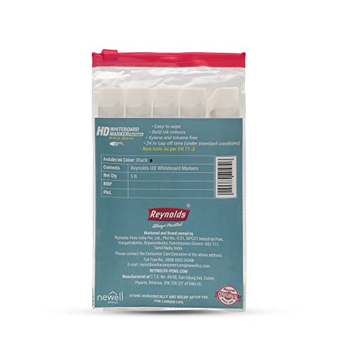 Reynolds HD Whiteboard Marker - Black Ink, Pack of 5