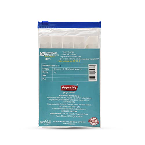 Reynolds HD Whiteboard Marker - Blue Ink, Pack of 5