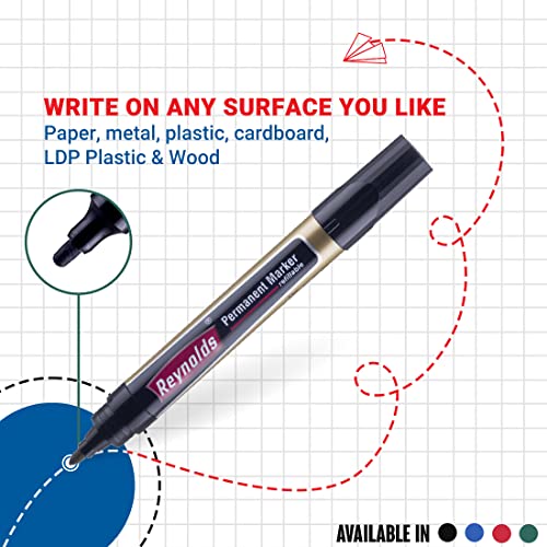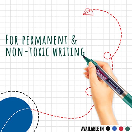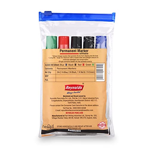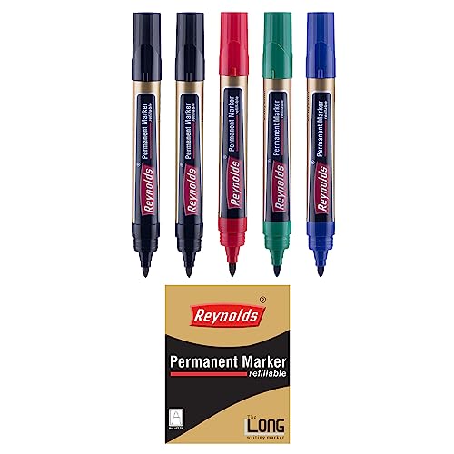 Reynolds permanent marker - 2 Black, 1 Blue, 1 Red & 1 Green, Pack of 5